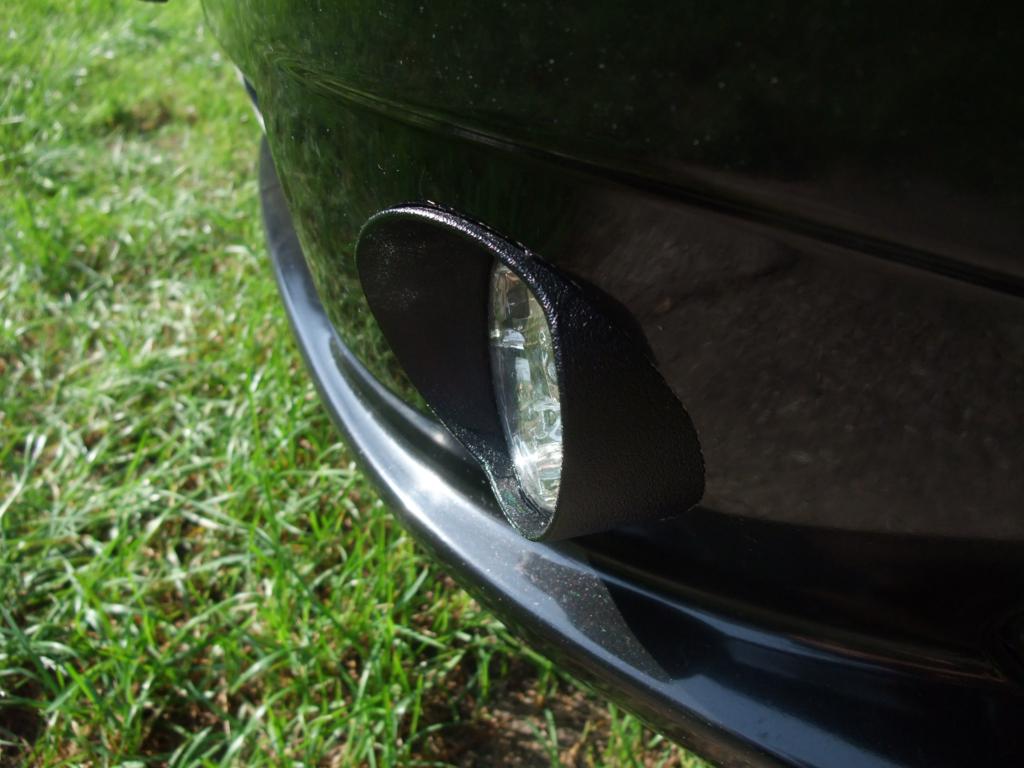 Witam wszystkich. Tak oto wyglądają okrągłe światła do jazdy dziennej DRL, które wykonałem wiercąc otwory zaraz obok halogenów. Efekt mojej pracy a także sposób ich wykonania widoczny na zdjęciach poniżej. Światła zamontowałem w rurach PCV o średnicy 75mm, oklejonych czarną folią i wtopionych następnie do wywierconych otworów w zderzaku. Światła przed zamontowaniem dopasowałem oklejając je dwukrotnie na obrzeżach czarną taśmą tak, by dość ciasno wsuwały się do rur PCV a ich położenie ustaliłem za pomocą dwóch dość miękkich drutów z nitów zrywalnych, który jak widać przechodzi przez rurę PCV oraz blaszkę mocującą światła. Może nie wygląda to z wewnątrz najpiękniej, ale spełnia swoje zadanie a także co według mnie najważniejsze daje łatwą możliwość wymiany świateł DRL, chyba nawet bez demontażu zderzaka, poprzez otwór po wyciągnięciu dolnej kratki. Przyznam, że nie sądziłem, iż jasność świecenia tych czterech diód w światłach DRL jakie zamontowałem, zaskoczy mnie aż tak pozytywnie, gdyż mają one przecież tylko 2 x 4W, czyli 8W w sumie. Dodam jeszcze, że są to światła bez automatu w lampach (podobno są to zawodne elementy, gdyż są wrażliwe na wilgoć), lecz na zwykłym przekaźniku rozwiernym, który wyłącza światła po włączeniu świateł pozycyjnych. Dołożyłem jeszcze jeden przekaźnik zwierny, który załącza światła dopiero po uruchomieniu silnika, a nie po włączeniu zapłonu. Zatem światła działają jak najbardziej zgodnie z obowiązującymi przepisami - załączają się po uruchomieniu silnika i gasną po włączeniu świateł pozycyjnych. Cały obwód zabezpieczyłem bezpiecznikiem, poprzez który plus z akumulatora podany jest na rozwarte styki pierwszego przekaźnika, następnie zwarte styki drugiego a potem światła. Pierwszy przekaźnik załączany jest plusem z alternatora (styki D+), który pojawia się po uruchomieniu silnika, a drugi przekaźnik, jak wspomniałem załączany jest plusem po włączeniu świateł pozycyjnych. Plus a także minus wziąłem bezpośrednio z akumulatora, tak było mi najwygodniej, przewodami zakończonymi konektorami z otworami i przykręconymi do zacisków istniejącymi tam śrubami. Przekaźniki umiejscowiłem w komorze silnikowej, zaraz nad skrzynką z bezpiecznikami. Plus ze świateł pozycyjnych wziąłem z wiązki od lewej lampy - przewód żółty z czerwonym paskiem, natomiast plus z alternatora wziąłem z wiązki biegnącej od alternatora do komputera, a dokładnie z miejsca na samym silniku u góry z jego lewej strony - przewód szary z czarnym paskiem. Zdjęcie przekaźników i podłączenie przewodów dodam niebawem - musiałem na razie pożyczyć swój aparat.