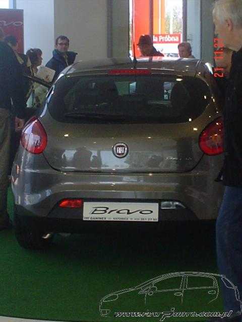 Chciałbym opisać moje wrażenia z oglądania Fiata Bravo. Samochód urzekł mnie swoją piękną sylwetką. Nie minęło nawet pięć minut, a już stał się moim ulubionym Fiatem. To kolejny, prawdziwie włoski Fiat. Wnętrze również mnie zaskoczyło - wskaźniki są czytelne i ładne, stylistycznie jest OK, ergonomia jest na niezłym poziomie, materiały są dobrej jakości, lecz nie wszędzie są dobrze spasowane, ale i tak Fiat zrobił w tej dziedzinie spory postęp. O przestonności nie będę pisał, gdyż nie jestem osobą rosłą, tak więc i w Seicento byłoby dla mnie dużo miejsca. Silniki są odpowiednie dla tego modelu, aczkolwiek przeszkadza mi brak w polskiej ofercie jednostki 1.4/120 KM. Jest to moim zdaniem idealny silnik do tego auta. Nie każdy chciałby silnik 1.4/90 lub 150 KM, a na diesla nie każdego stać. Bravo ma moim zdaniem jedną wadę - mianowicie - ceny. Fiat nieco przesadził z wyceną tego auta - 49 990 zł za podstawową wersją Fresh to lekka przesada. Nie usprawiedliwia tego nawet 3-letnia gwarancja bez limitu kilometrów ( któż by zrobił 1 mln kilometrów w 3 lata ? ) Oczekiwałem ceny na poziomie ok. 47 000 zł. Ceny niektórych opcji również powalają, ale w ten negatywny sposób. Mimo tej wady uważam, że Bravo to bardzo dobry samochód. Od dealera dowiedziałem się, że dużo osób złożyło zamówienia na to auto, co przy nieco wysokiej cenie jest sporym sukcesem. Na koniec chciałbym podziękować katowickiemu dealerowi GANINEX za udzielenie mi pozwolenia na robienie zdjęć.