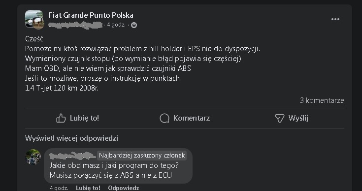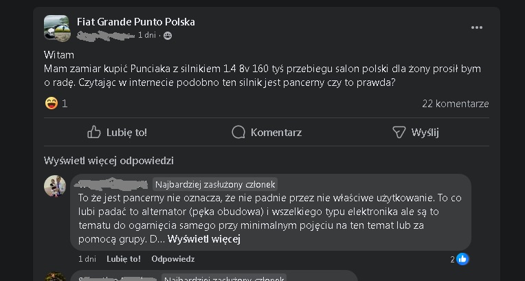 Później sieroty zajeżdżają te samochody na śmierć (NIC nie robią 5-10 lat) i w razie problemu na forum jeb nowy temat i jeszcze z pretensjami, że mamy od razu zgadywać usterkę i podać jedno rozwiązanie (jedna część do wymiany ma uzdrowić zaniedbanego grata). Tak to się kończy typowo (kilku takich gagatków rocznie się tu trafia). Albo petent strzela focha i sprzedaje auto, "bo awaryjne". Ale swojego udziału w usterkach nie widzi... [ Dodano: 03 Maj 2024, 21:32 ]Siermięgi z Szajsbuka przechodzą samych siebie. Oczywiście Fiaty i model Punto nie mają for dyskusyjnych (a jak mają, to nie ma tam takich informacji, a w internecie nie można samodzielnie wyszukać Instrukcji Obsługi w PDF)... Załącznik: