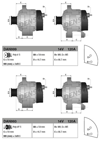 Ale nie w tym rzecz, gościu zamówił alternator wg numeru z naklejki, ale przyszedł inny DENSO DAN993 120A (numer 51788658). Powiedziałem mu, że to nie taki jak mam w aucie i nie będę go montować. Pan był niepocieszony, oddał kasę.