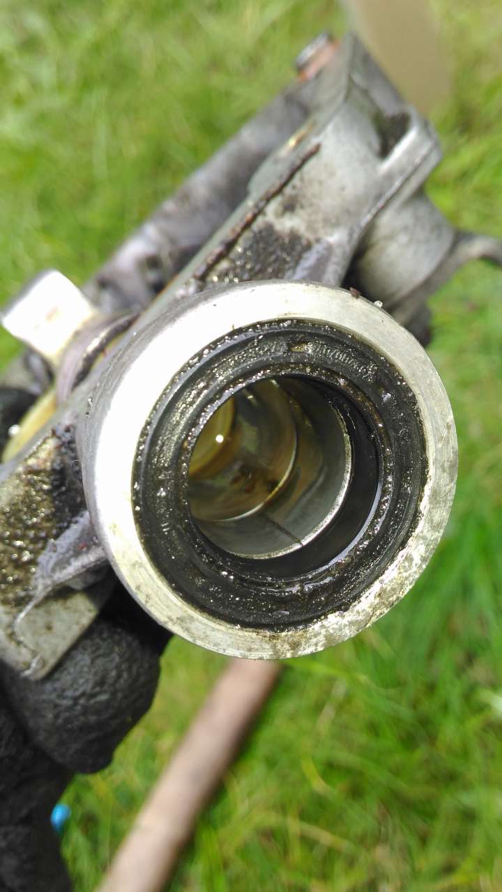 Wczoraj wymieniłem felerny simmering. Generalnie instrukcja jest w porządku, całość zajęła mi około 5h. Miałem spore problemy z wybiciem kołka, ale jakość w końcu poszło (choć w pewnym momencie już myślałem, że się nie uda). Rozplatałem skurczybyka na cześci i wyleciał w kawałkach.
