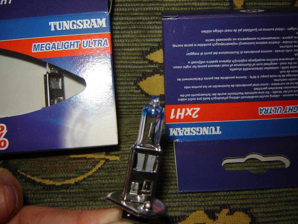 Widać. Przed Tungsram + 90, siedziały zwykle Osramy H1. Poprzednio jeszcze miałem Philips +50, i te mają dobrą cenę do jakości(ale i tak są prawe 2 x droższe od Tungsram), też rok wytrzymały, nie wiem czy to długo, ale u mnie nawet zwykłe tylko tyle wytrzymuję. W sumie u wujka w skodzie fabii przepalają się żarówki co 3 miesiące:). p.s. Tungsramy +90 mam założone zarówno na mijania jak i długich, dziś na długich jechałem po za miastem, no no byłem happy. A mam nowe (roczne) reflektory  . Zrobię śe którego wieczru porównanie Tungsram + 90 vs Osram Nigthbreaker + 90. Tyle że osram 2,5x droższy  . Kupujmy żarówki firmowe, żadne xeonony z Auchan za 5zł (jak coś to Philipsa Xenon Effect za ok 80zł na allegro;d), firmowe, z filtrem UV to jest najważniejsze!!. Nie ma filtra UV(a to się tyczy tych najtańszych z marketów) i reflektory matowieją. Tunsgram + 90 ma filtr UV. Poniżej fotki, robione teraz.