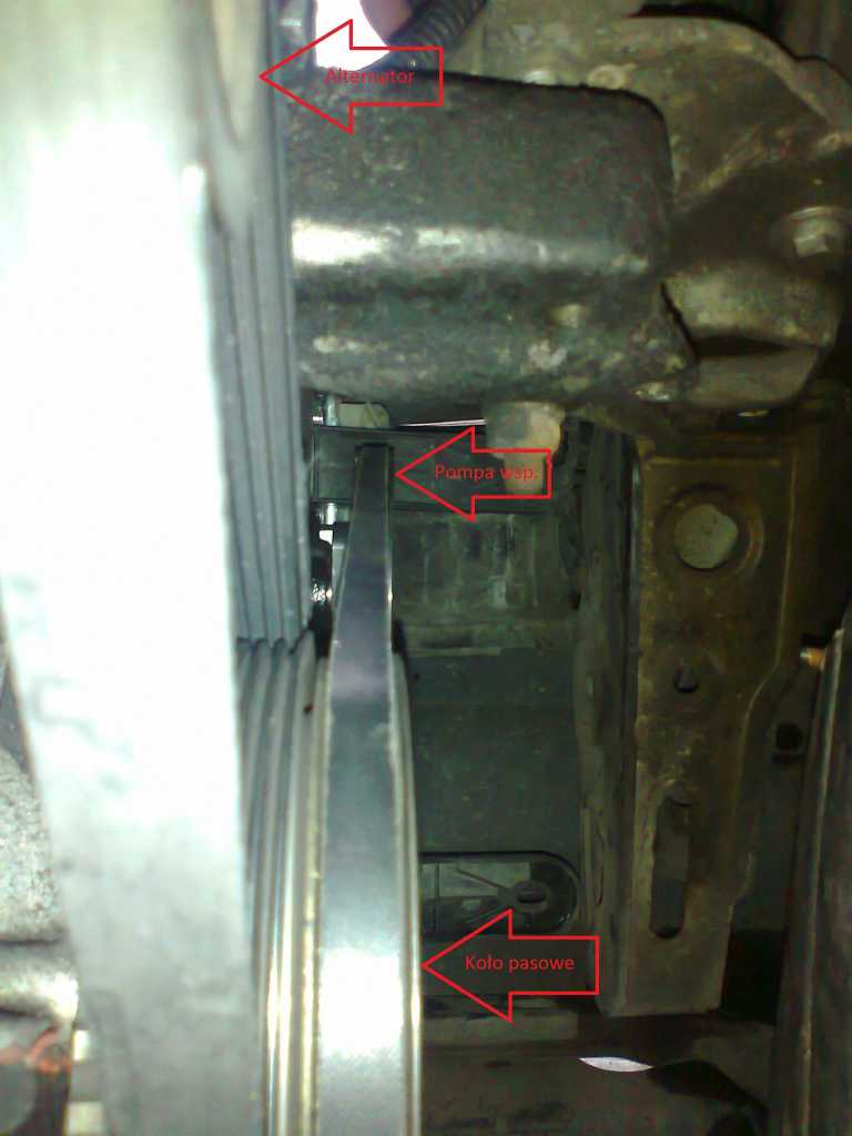Tak widać że pasek idzie krzywo musisz pompę dać w stronę kolektora. U mnie maglownica nie chciała wejść musiałem opuścić całe sanki zawieszenia trochę roboty było. A pamiętaj obróć mocowanie kolumny mcphersona przed kontrolą geometri.