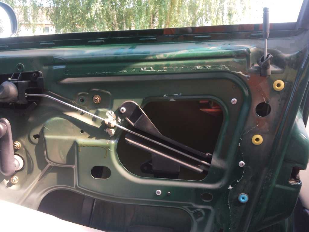 W środku drzwi, też słabo, bo tam jest taka przynitowana osłona plastikowa wokół cięgna.