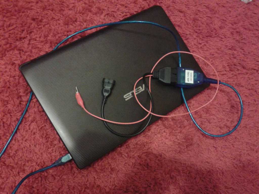 podlaczamy najpierw do kompa sam KKL i instalujemy sterowniki wg. instrukcji na płytce. pozniej podlaczamy adapter do KKLa a pozniej reszte, tj. adapter do wtyczki pod maską: Załącznik: