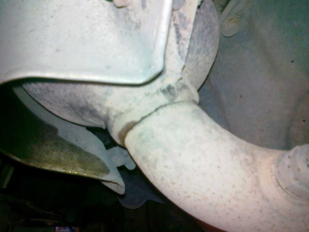 Witam ostatnio zacząłem słyszeć głośniej pracę silnika podczas jazdy. Podjechałem na kanał i zauważyłem pęknięcie na łączeniu katalizatora z rurą wychodzącą do rury środkowej od wydechu. Moje pytanie czy da się to pospawać u Pana Mietka w warsztacie bo sam nie posiadam migomatu. Wydaje się jak by ta rura była grubsza !!! nie takie cienkie gówienko jak do tłumików dają, ale mogę się mylić. Załącznik: