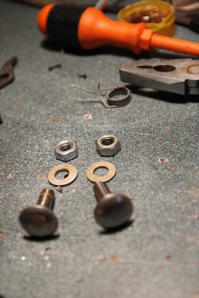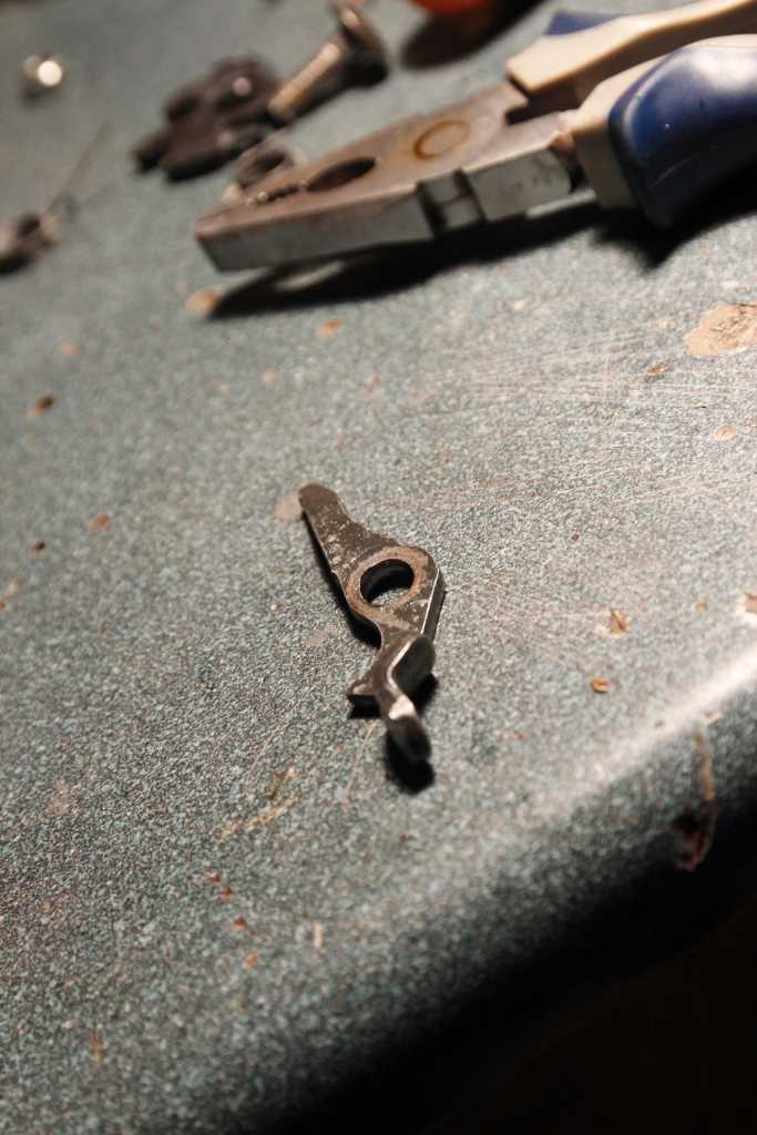 Rozebrałem cały zamek. Nity rozwierciłem do końca, by pozbyć się ich całkowicie. Ważne było by zapamiętać jak układają się blaszki i jak mają być założone sprężynki.