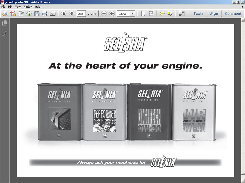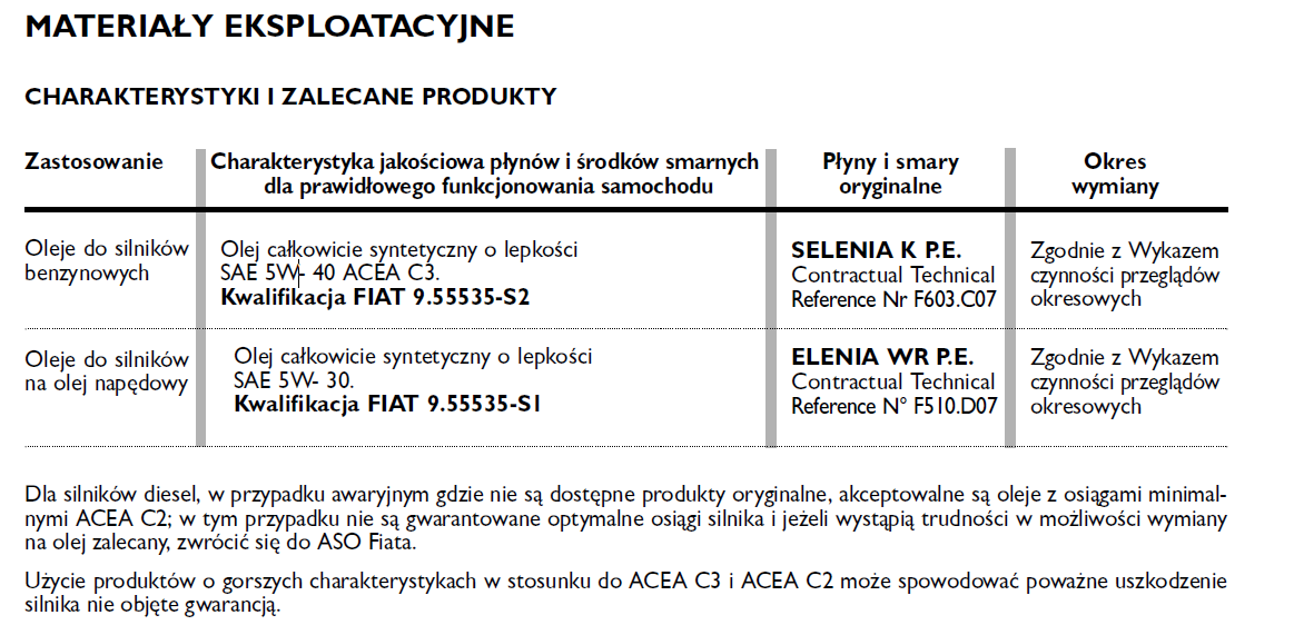 Zrób troszkę większe rozeznanie, niż tylko zajrzenie do jednej wersji instrukcji. Źródeł jest więcej. 1. Pierwsze Grande miały zalecaną specyfikację Fiata z końcówką -M2 (czyli wystarczy A3/B3). To wszystko stara rodzina FIRE pamiętająca konstrukcyjnie lata osiemdziesiąte ubiegłego Wieku. Zwykła, stara seria olejów. Załącznik: