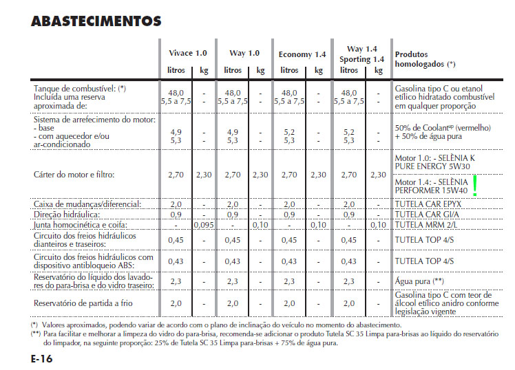 Uwaga, sensacja-rewelacja. Silnik 1,4 8V ze zmiennymi fazami, na rynku Brazylijskim ma mieć 15W/40 ACEA A3 (Fiat ...-G2). Wymiana oleju zalecana co 15 tysięcy (lub rok) lub w cięższych warunkach 7,5 tys. km. Żadnego "long life"! Załącznik: