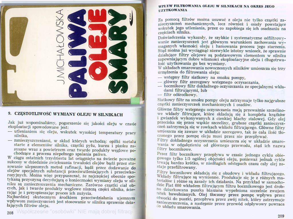 Co do wymian, to niestety bez badania próbki oleju, można zgadywać "na oko" (raz lepiej, raz gorzej, ocenić, czy się mocno - "organoleptycznie" - zmieniła lepkość, barwa, czy wyraźnie czuć paliwo/spaliny w oleju). Jedyne co można zrobić (szybko, tanio i amatorsko, hobbystycznie), to poprawić filtrowanie (choćby raz, dla eksperymentu), czyli proponowana wcześniej dodatkowa zmiana samego filtra w połowie okresu wymiany oleju, może pomóc np. na słynny "warkot silnika" przy odpalaniu (do pewnego stopnia normalne we wszystkich Punto i nie tylko). To już z innej książki (też polecam).Załącznik: