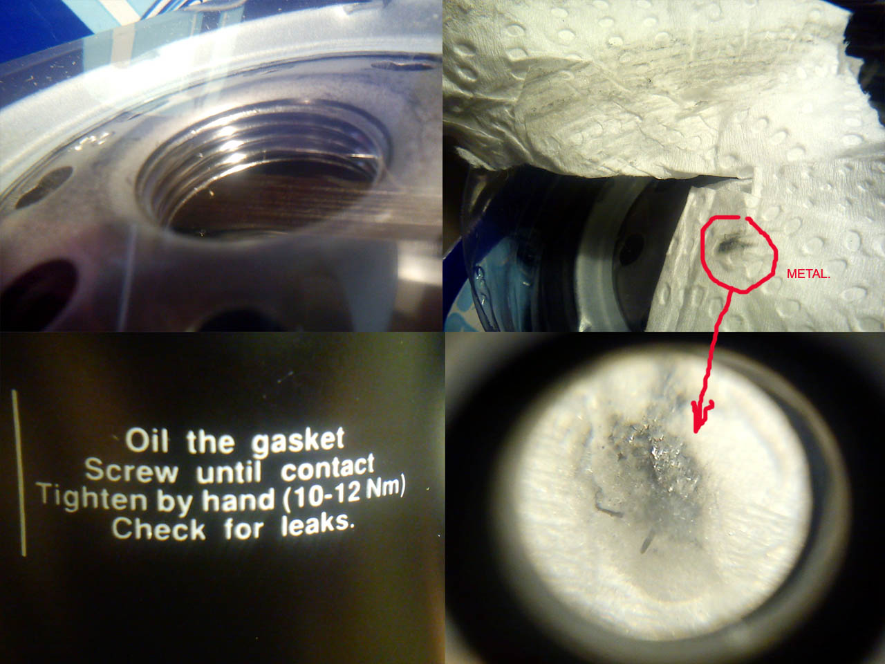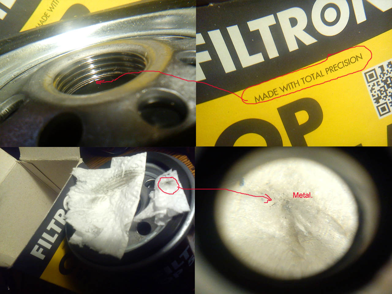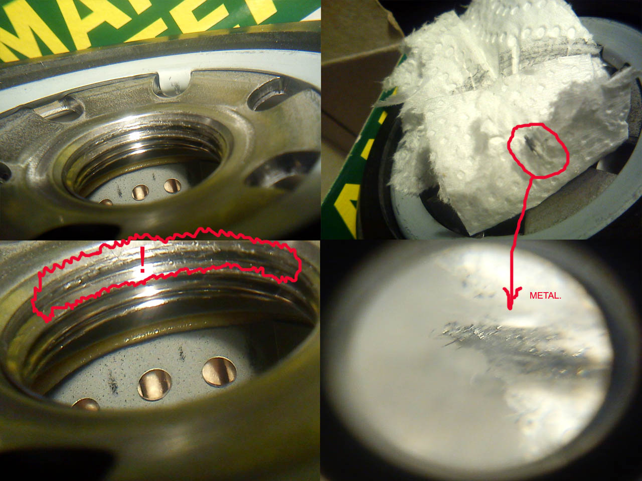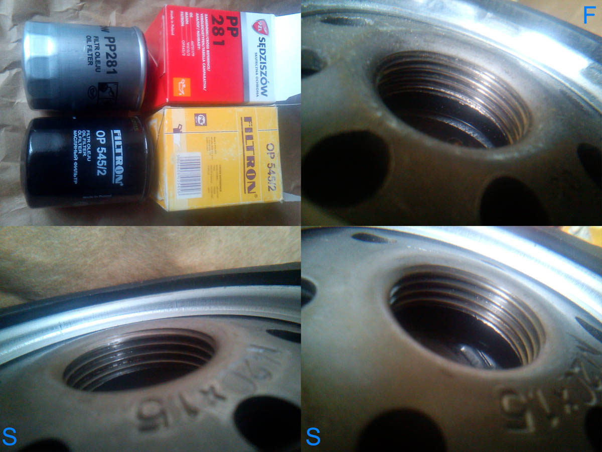 Filtron dalej ma poszarpany gwint, ale zrobili chłopcy postęp, nie odpada już nic. Gwint jest troszkę brudny. Ale ogólnie "OK". Załącznik: