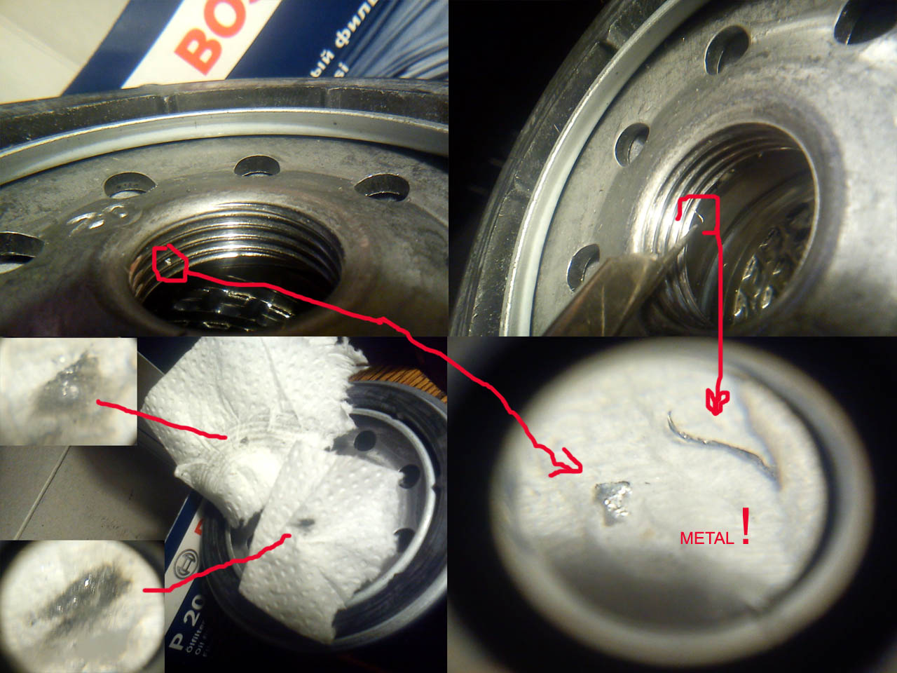 Największa porażka tym razem: Bosch! Wiór (płatek stalowy) leży luzem na brudnym gwincie + jeden długi "włos"! Na bank uszkodziłby panewkę! Skandal międzynarodowy! Załącznik: