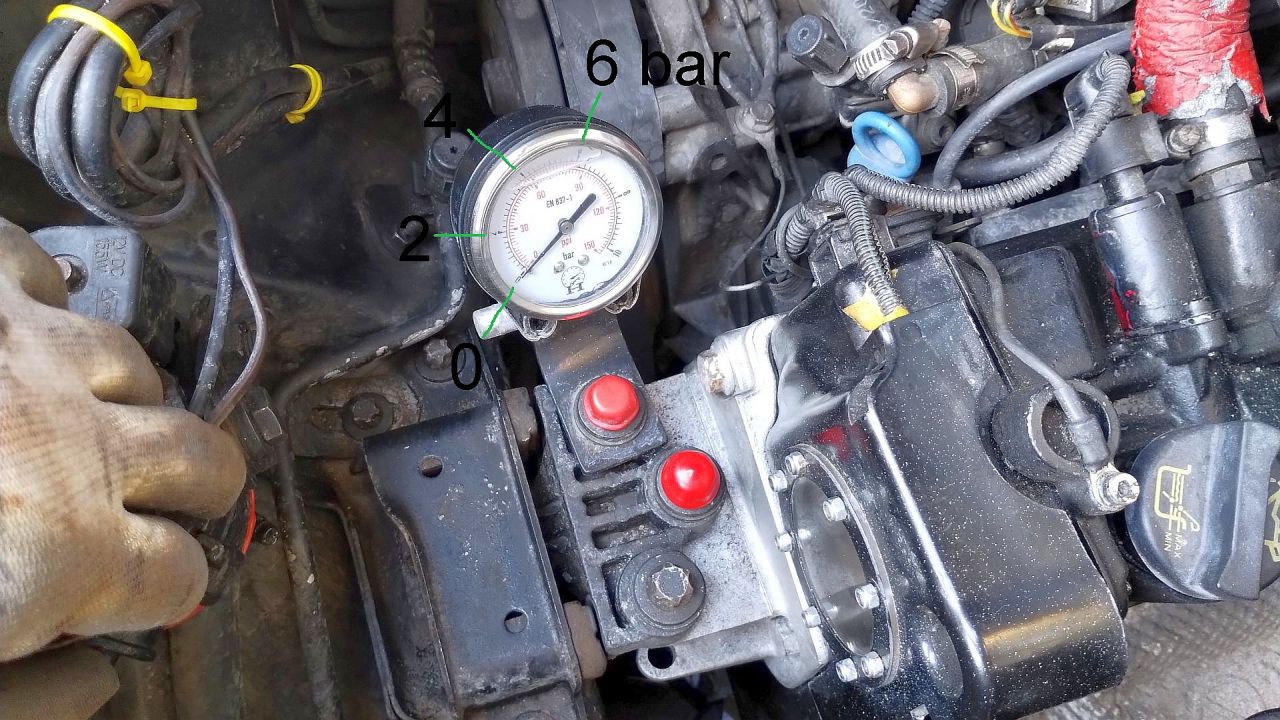 Rośnie do ponad 4 barów (około 4,5 jak jest ciepło, 5 bar na mrozie, co praktycznie oznacza pracę na przelew, taka jest nastawa). Uwaga: na mrozie i starym oleju to ustabilizowanie trwa prawie całą minutę. Na pewno nie wolno jechać "od razu" po odpaleniu! Co to za zjawisko, jeszcze nie wiem, czy aż tyle trwa "nabicie" wszystkich kanałów, głowicy, czy też bypass filtra się otwiera i zamyka dając taki efekt. Dobicie do >4 bar na zimno jest dużo szybsze na świeżym oleju (i filtrze). Załącznik: