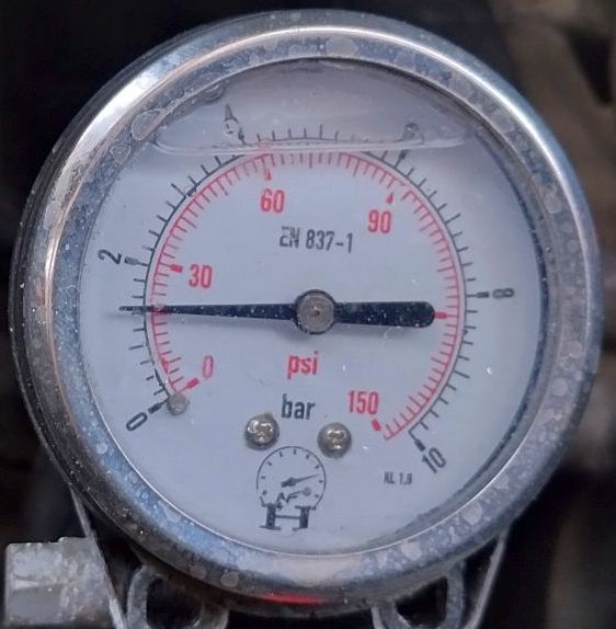 Zimny start daje początkowo takie wartości, 2-3 bary przez pierwsze sekundy. Po czym rośnie... Załącznik: