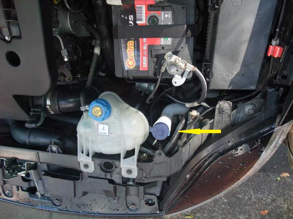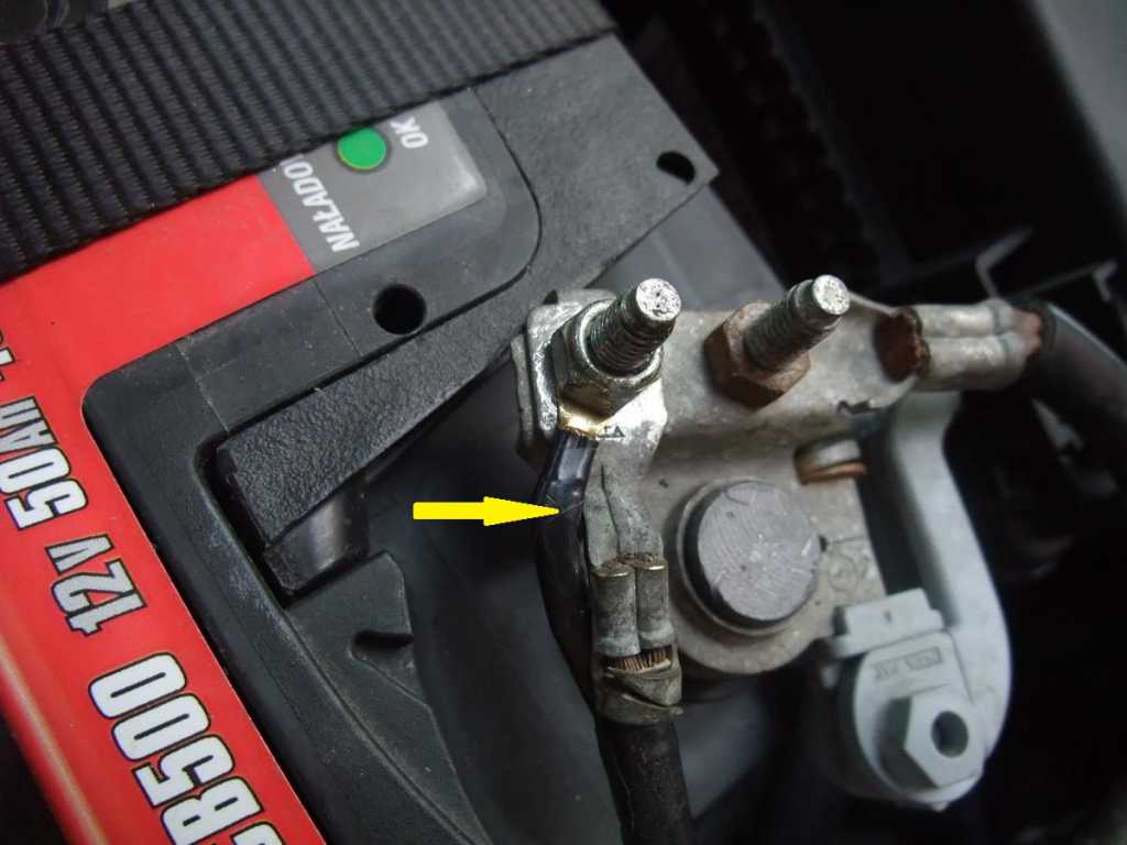 Plus z akumulatora - żółta strzałka, bezpiecznik nożowy MINI - niebieska strzałka: