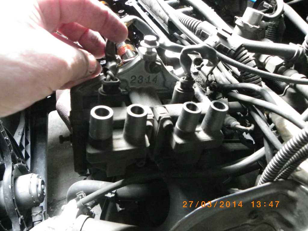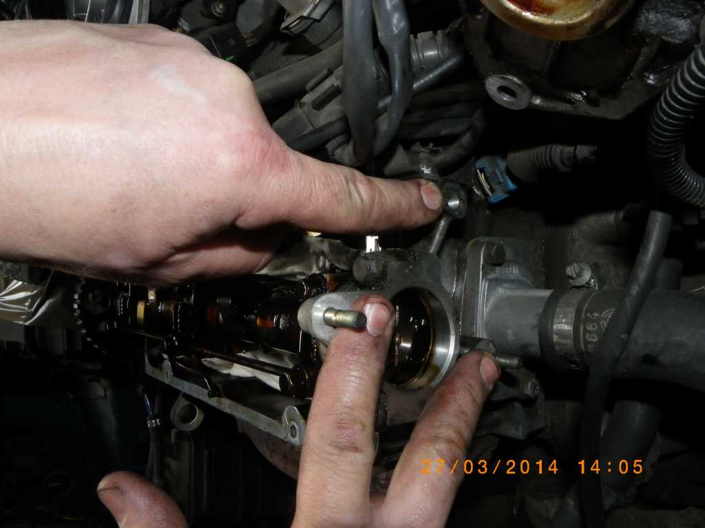 7) Przystępujemy do odkręcenia wałka rozrządu - 4 śruby + 2 przy cewkach.