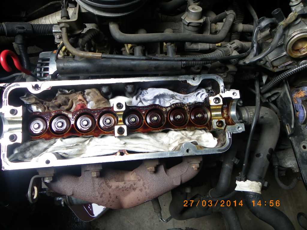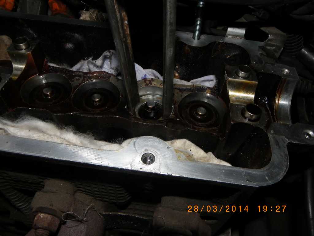 Tak po kolei wszystkie zawory. Poskładać wszystko w odwrotnej kolejności. Po zamontowaniu wałka rozrządu w razie wymiany płytek sprawdzić jeszcze raz wszystkie luzy zaworów. Po zmontowaniu wszystkiego odłączyłem pompę paliwa i zakręciłem rozrusznikiem, aż olej zalał wszystko co trzeba.