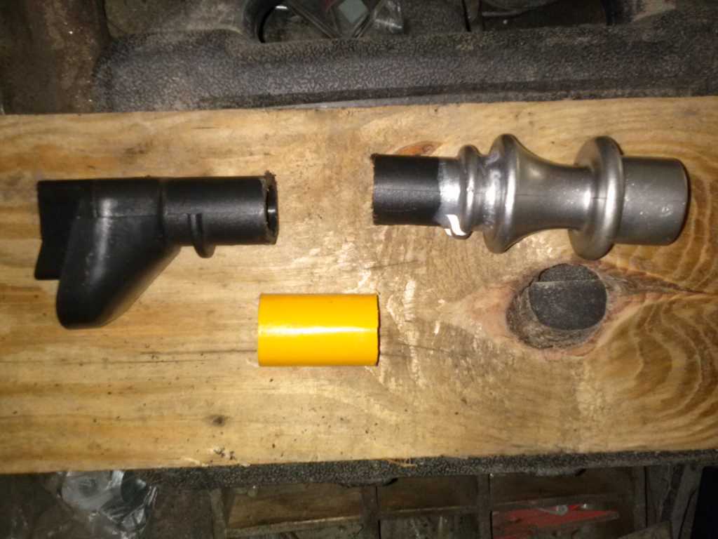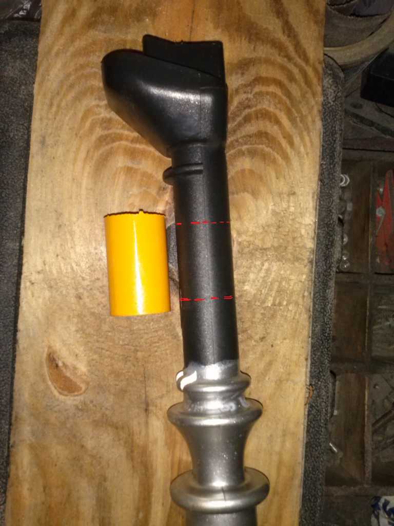Dobrałem sobie rurkę ( ta żółta) taką która najdzie na plastikową rurkę. Żółta rurka pobrana z kija od mopa jest minimalnie większa przekrojem. Aby połączyć oba elementy ja wykorzystałem klej do szyb (pozostał po sklejaniu lamp). Jest od bardzo wytrzymały po utwardzeniu więc to mi ułatwiło sprawę. Nałożyłem klej na plastik i nałożyłem rurkę i dodatkowo przejechałem klejem po całości. Tylko żeby klej nie wcisnął się w środek rurki bo nie nałożycie później na drążek od biegów. Załącznik: