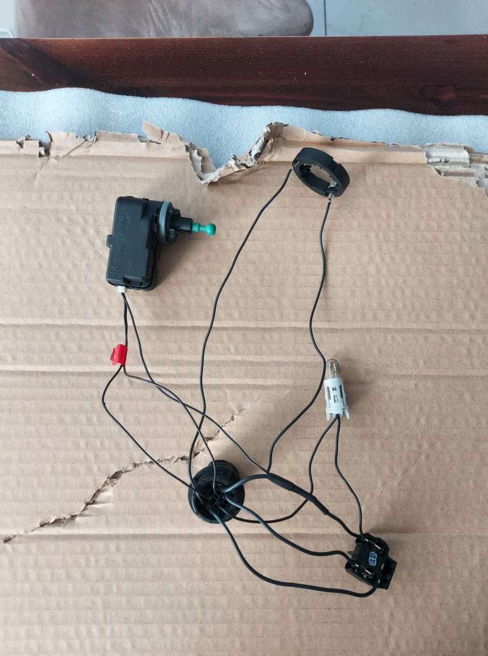 Z racji na niemożliwość identyfikacji losowo przelutowałem te 2 oznaczone na czerwono przewody z odpowiadającymi im przewodami z działającego reflektora - regulacja nie działała i nic się nie spaliło.