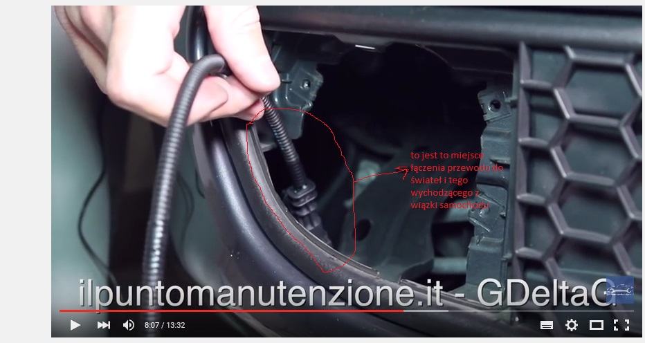 Zobaczymy, jeśli mi się uda to założę [ Dodano: 04 Lut 2016, 18:22 ]Jak się okazało chyba zaczynam się domyślać jak to idzie. Z karoserii przy kierunkowskazie idzie wiązka przewodów, z czego jeden odchodzi do kierunku w zderzaku, drugi jest doczepiony luzem. Jak widać tutaj (screeny z filmu z kanału na yt, który podesłał puntoevodynamic), facet podpina wiązkę prowadzącą bezpośrednio do lamp. Od razu po obejrzeniu filmiku poszedłem do garażu i po otworzeniu maski, moim oczom ukazał się widok przewodu takiego jak na obrazku 1.