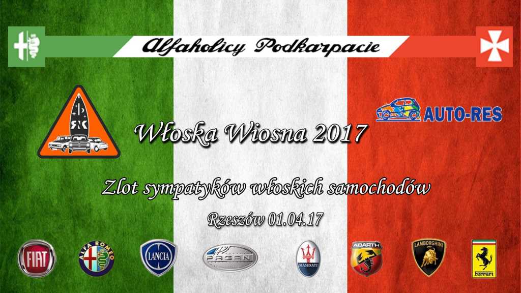 Dobrze że ktoś wrzucił informację o tym zlocie tutaj, bo ja się zebrać nie mogłem. Impreza jest w Prima Aprilis jednak to nie jest żart, szykujemy dużą imprezę Włoskiej Motoryzacji w Rzeszowie na przywitanie wiosny. Wszystkich zainteresowanych zapraszamy do dodania się na wydarzeniu : https://www.facebook.com/events/1224324327681858/Oraz do śledzenia go na bieżąco. Do kwietnia jeszcze dużo czasu lecz przygotowania idą pełną parą. Zainteresowanie jest spore tak więc prosimy o potwierdzanie obecności dodając się do wydarzenia. W tamtym roku organizowaliśmy podobną imprezę pod szyldem "Alfy Romeo" i samych alf było ponad 200 szt, w tym roku mamy w planie pobić ten wynik co najmniej dwukrotnie. Stąd prośba o zostawienie po sobie śladu w postaci dodania do wydarzenia ponieważ chcemy +- oszacować ile osób weźmie udział w wydarzeniu  Stay Tuned!