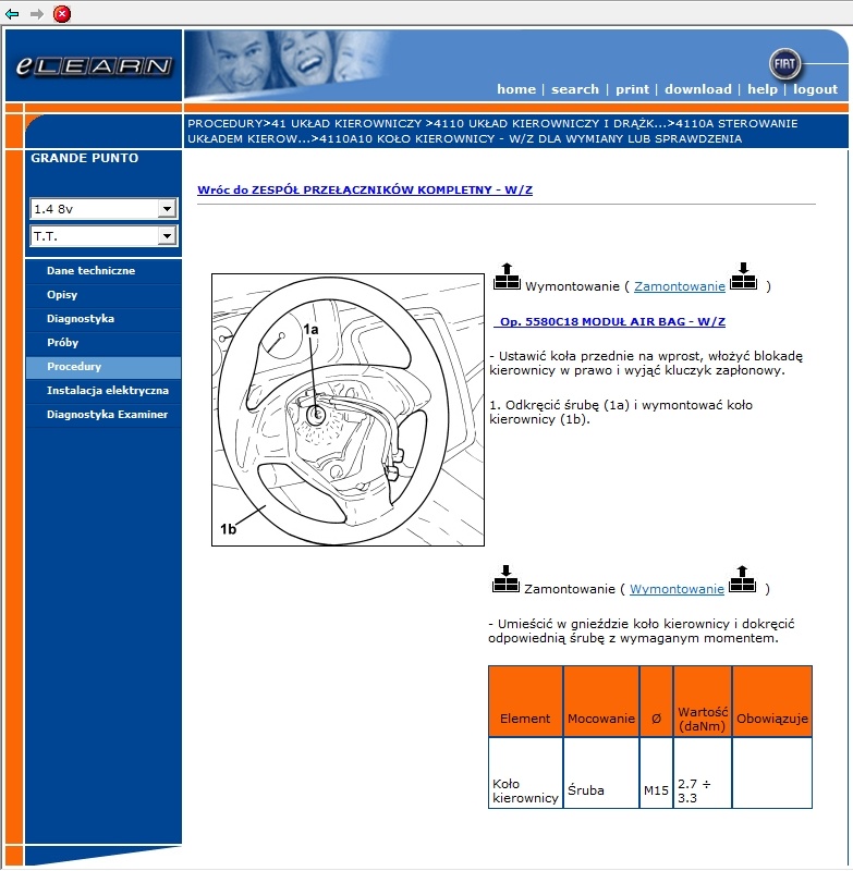 Bede wymieniac kierownice, i pytanie jest jak mocno dokrecic w NewtonMeter. (W grande punto elearn tego nie znalazlem)