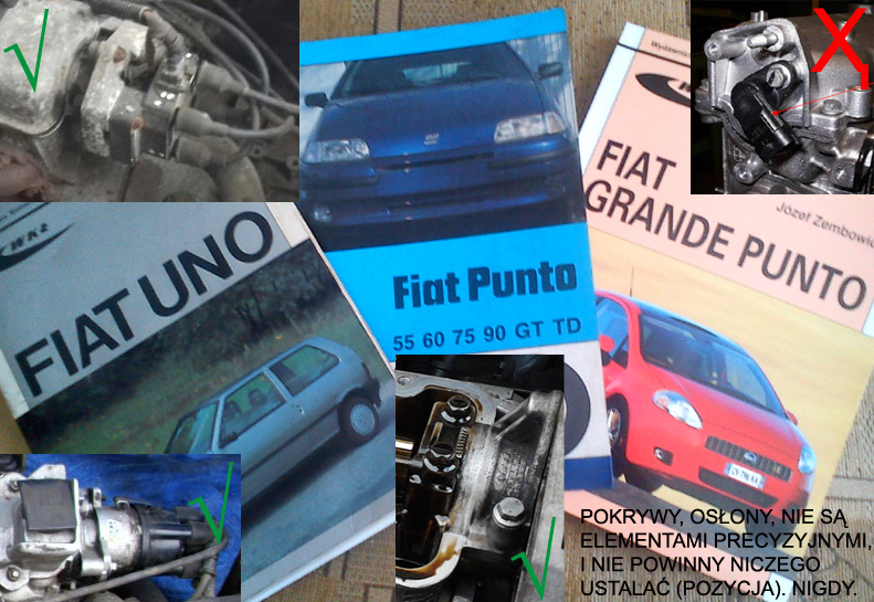 Tu się pojawiło młode pokolenie gamoni (inżynierów Fiata) i postanowili "usprawnić" silnik, wyeliminować mechaniczny rozdzielacz zapłonu i wszelkie ślady po nim, aby nigdy więcej nie było konieczności kłopotliwej regulacji mechanicznej... Komputer załatwi resztę.  Ale chwila... Wstawili więc elektroniczny czujnik położenia (faz) wałka,...ale zamocowali go do "pływającej" pokrywy! Brawo!W akcie desperacji dali jakiś jeden kołeczek ustalający (dlaczego nie dwa?) oraz wymyślili "wzornik" (szablon). Powinni zostać przy konstrukcji z Punto_1 i czujnik umieścić sztywno w głowicy ("dziura" po rozdzielaczu). Załącznik: