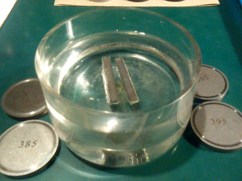 Coś takiego można by założyć, o ile płytka jest równa co do grubości. Stroną szlifowaną do szklanki. Wytrawianie ujawnia też strony szlifowaną (wzorek) i oryginalną (docierana, dogładzana). Ten "wzorek" to oczywiste nierówności powierzchni szlifowanej oraz różnice w strukturze (przegrzane, rozhartowane, przehartowane lokalnie). Szlifowanie NIE jest wcale prostym procesem, bo można spowodować wiele wad na raz (przegrzanie, deformacje, pęknięcia, wcale może nie być "idealnie" równo, itp.). To dla laików, którzy myślą, że jak rzucisz coś na "magnesówkę", to to będzie cudo-ideał. Nic bardziej mylnego... Załącznik: