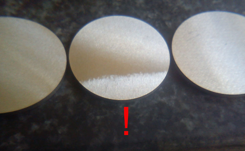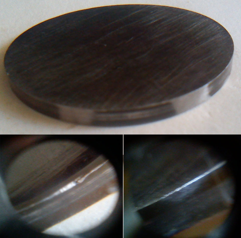 Płytka z dziwną różnicą połysku, odbicia światła jest oczywiście nierówna (jakiś praktykant to szlifował), aż 3 setki (złom, nie wolno tego wkładać do silnika)! Załącznik: