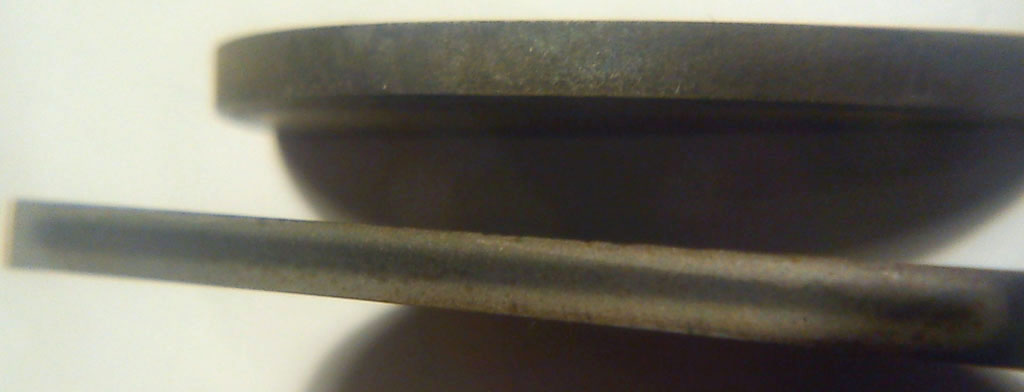 Komentarz do pliku: Zgład metalograficzny udowadnia różnicę między "skórką" (powierzchnią) a "rdzeniem" płytki. Czegoś takiego lepiej nie szlifować (tylko szlifierz-mistrz mógłby cokolwiek tutaj zdziałać).