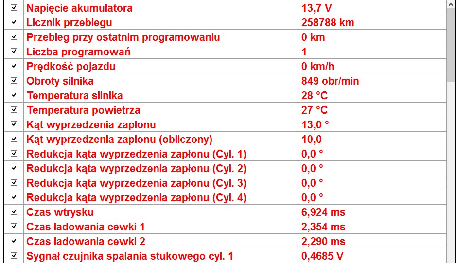 W załączeniu dodaje screeny z MES'a na ciepłym silniku i PB. Jutro wstawię screeny na zimnym.