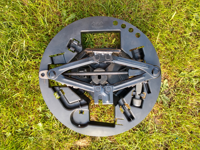 Sytuacja wyjściowa wyglądała mniej więcej tak jak poniżej, może i nawet ciut bardziej (góra i dół były blisko tego cylindra pośrodku), na pewno nie mniej. Nie wiem jak ktoś to tam zmieścił, ale "zabawy" z wyciąganiem tak włożonego podnośnika nie polecam w przypadku potrzeby szybkiej zmiany koła. Załącznik: