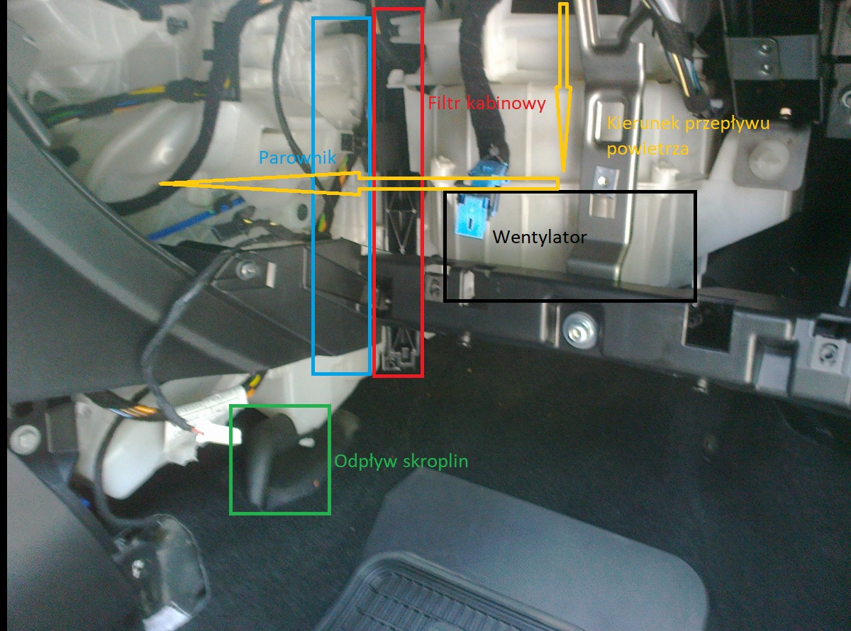 1. Demontujemy filtr kabinowy, wydmuchyjemy wentylatorem ewentualny syf, możemy odkurzaczem pojeździć też w komorze filtra... ale puszczenie wentylatora na max raczej załatwi temat.