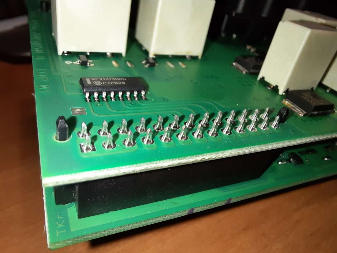 Jak widać płytka komputerowa i wykonawcza są razem spięte za pomocą dwóch jednorazowych, zatrzaskowych złączy… brak dostępu do lutów przekaźników i tak trzeba jakoś rozdzielić płytki.
