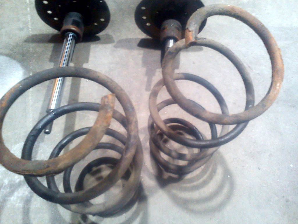 5. Miała być tylko wymiana amorów, a tu niespodzianka. Obie sprężyny pękły tak samo, zgniły i odpadły dolne odcinki...