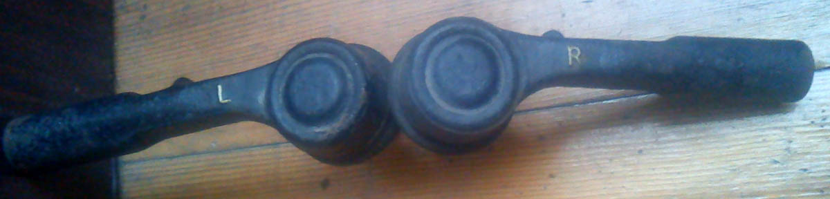 Tak na prawdę akcja zaczęła się od hałasów, stukania w zawieszeniu na jesień i na początku nie wiadomo było co to. Nie dało się ręcznie znaleźć luzów (stąd decyzja, że już chyba czas na amory, bo też mogą wewnątrz się tłuc). Dopiero teraz na wiosnę luzy się powiększyły i zaczęło w rękach latać jedno koło. Luzy ujawniły się na drążku kierowniczym. Jakby co to jest niby wersja lewa i prawa, ale oferowane są też wersje symetryczne (uniwersalne na lewą i prawą). Wymiana jest banalna, nie ma co opisywać (oraz da się wymienić tak, że auto jedzie prosto).
