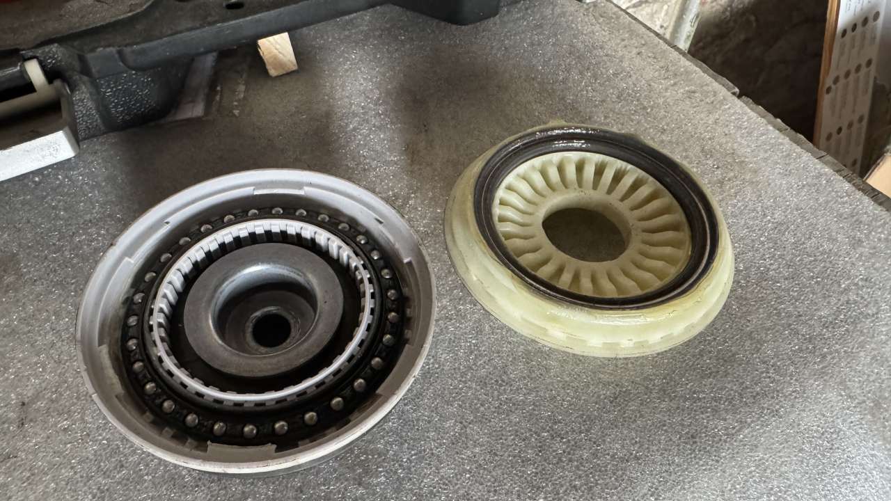 8. Przykładowa fotka z Allegro. Łożysko/poduszka, odbój, osłona. Ktoś nadgorliwie i niepotrzebnie zerwał biały plastik z amora (to jest część "integralna" amortyzatora, tego się nie zdejmuje, nie handluje tym - chociaż na poprzedniej fotce ja też to zbiłem). Internet to świetna pomoc przy naprawach, ale uważać (oferty mogą błędnie coś sugerować - co stanowi "komplet", a co nie, jaka jest pozycja i kolejność montażu i tak dalej).