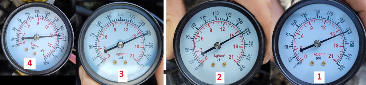 Ciśnienie paliwa nie było mierzone, sugerowałem się tym że silnik mam moc, jak na 60KM jedzie dosyć dynamicznie i nie ,,zdycha,, na wysokich obrotach. Robiłem też próbę jazdy bez korka wlewu paliwa, czy przypadkiem odpowietrzanie nie jest problemem, ale nie było różnicy. Pytanie, pompa paliwa pracuje cały czas z jedną prędkością? czy sterownik reguluje jej obroty w zależności od obrotów silnika? Pompa paliwa to będzie chyba kolejny etap, przeszło mi przez myśl jeszcze jedna rzecz, paliwo E10, niby ten silnik współpracuje ale problemy z stukowym zaczęły się mniej więcej w tym czasie jak wprowadzili to paliwo. Może przypadek... To już drugi katalizator. Samochód kupiłem 3 lata temu z uszkodzonym sprzęgłem i katalizatorem. Z tym że kat był uszkodzony mechanicznie, nie było dolnej opaski i pękł u góry. Kolejny katalizator (używany) wytrzymał 30 tys. km i pojawiło się ,,popierdywanie,, Generalnie zaczyna robić się nieciekawie, używany katalizator 500zł, nie wiadomo ile wytrzyma, zamiennik 1000zł (słaba jakość) a oryginał nawet nie chce wiedzieć, pewnie z 2000zł. Zmierzyłem ciśnienie sprężania, silnik zimny, wtryskiwacze odpięte, przepustnica otwarta. Chiński manometr, pokazuje mniej więcej równo... ale 15 atm. Nie za dużo? Załącznik: