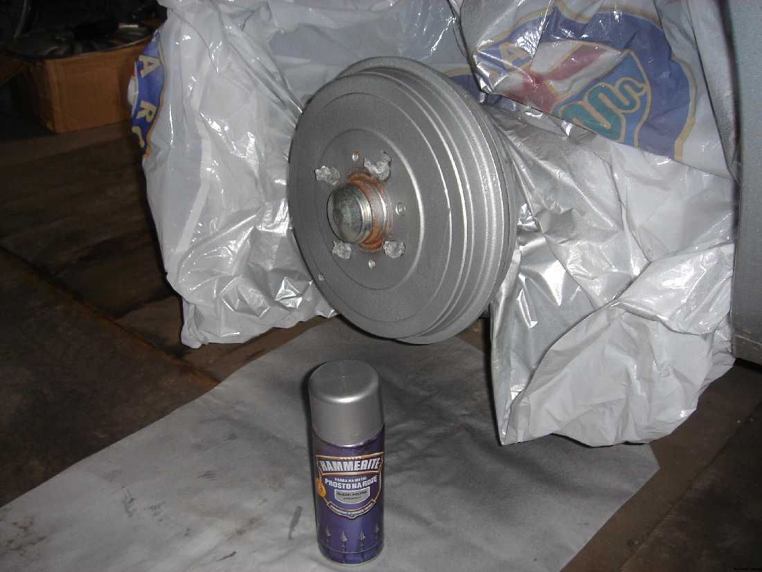 A ja się bawię dziś w malowanie bębnów. Miłe zajęcie. Wybrałem farbę Hammerite w spray'u na rdzę. W kolorze srebrnym (taki gust co zrobić) Alu są srebrne więc bębny też. Pozatym "imitują" tarcze troszkę.
