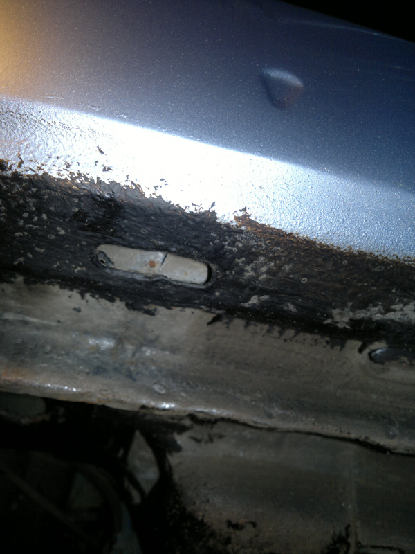Rdza pojawiła się na wewnętrznej części progu, po czym poszła po granicy ziaren kwitnąc w najlepsze pod lakierem (stąd wybrzuszenie). Gdyby miało się coś pojawić na skutek podnośnika, to byłoby to zapewne wgniecenie lub pęknięcie lakieru, a nie "bąbel". Ale wówczas oznaczałoby to tylko jedno: próg w agonalnym stanie.
