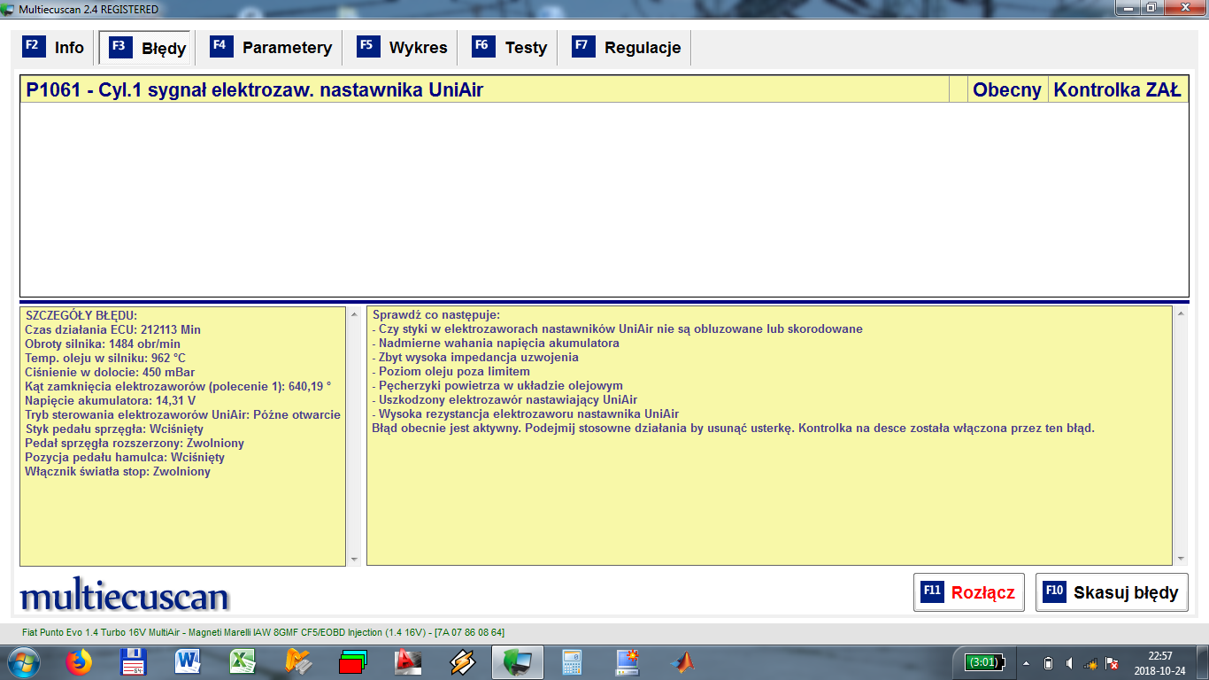 pmxoo7pI napisał(a): Błąd wskazuje na problemy ze zmiennymi fazami i/lub coś ze składem spalin (czyli paliwo lub powietrze - w tym przesuwna klapa w kolektorze ssącym w silniku 16V, o czym 99% gazowników nie wie i wiercą "wkrętki" na pałę). Jedyne co steruje fazami (i nie tylko) w tym silniku to aktywator multiair. Klap wirowych z tego co mi wiadomo Multiair 105 też nie ma. A P1062 to jeden z błędów które mogą a nie muszą wskazywać początek zgonu aktywatora Tu niby jak na tacy problem z aktywatorem itp.: Załącznik: