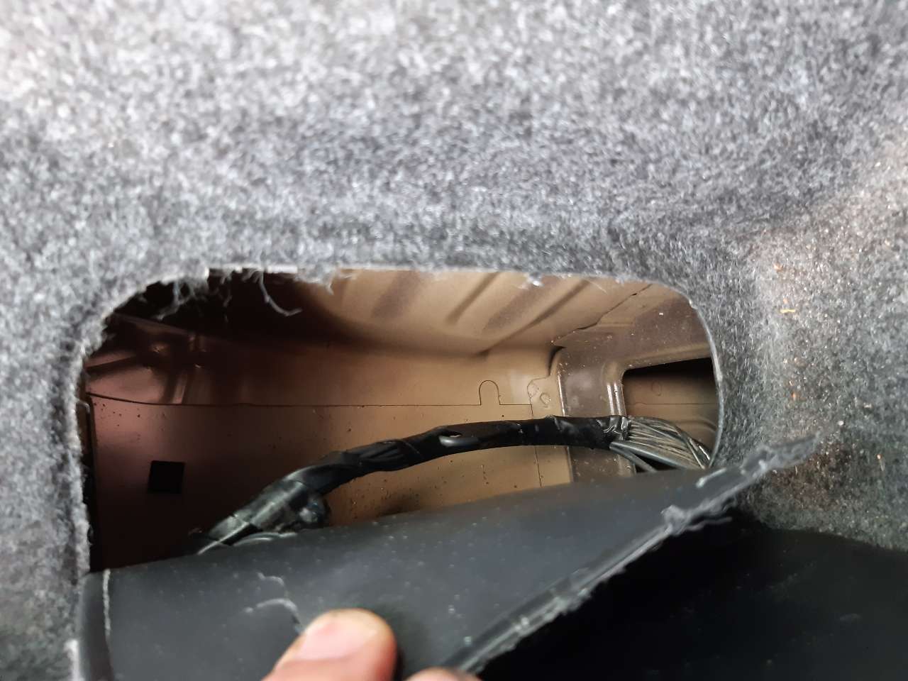 Zerknąłem w instrukcję, wyczytałem, że w bagażniku są bezpieczniki, a jeden z nich: "System podnośnika szyby (silnik, centralka kontroli) na drzwiach lewych". Chciałem go znaleźć i tutaj pojawił się problem... Nie mam bezpieczników w bagażniku po lewej stronie, tak jak mówi instrukcja. Sprawdziłem pod wycięciem materiału, zdjąłem wręcz cały materiał i nic.
