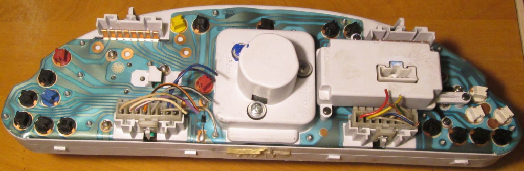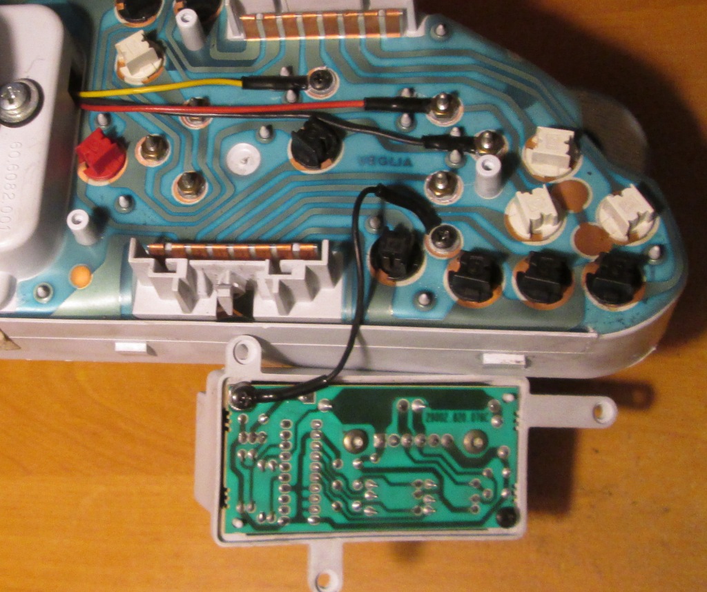 Po odkręceniu trzech śrubek trzymających moduł do zegarów widać go od strony płytki drukowanej PCB, od strony ścieżek.