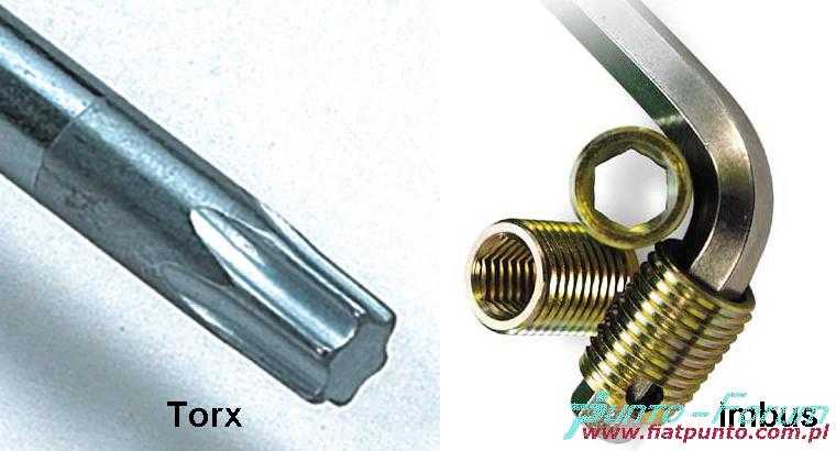 Ponieważ w niektórych egzemplarzach Punto, w miejscu wskazanych śrub torx znajdują się śruby imbusowe poniżej przedstawiam różnicę pomiędzy oboma typami śrub/kluczy.