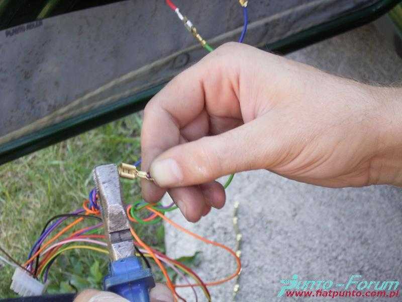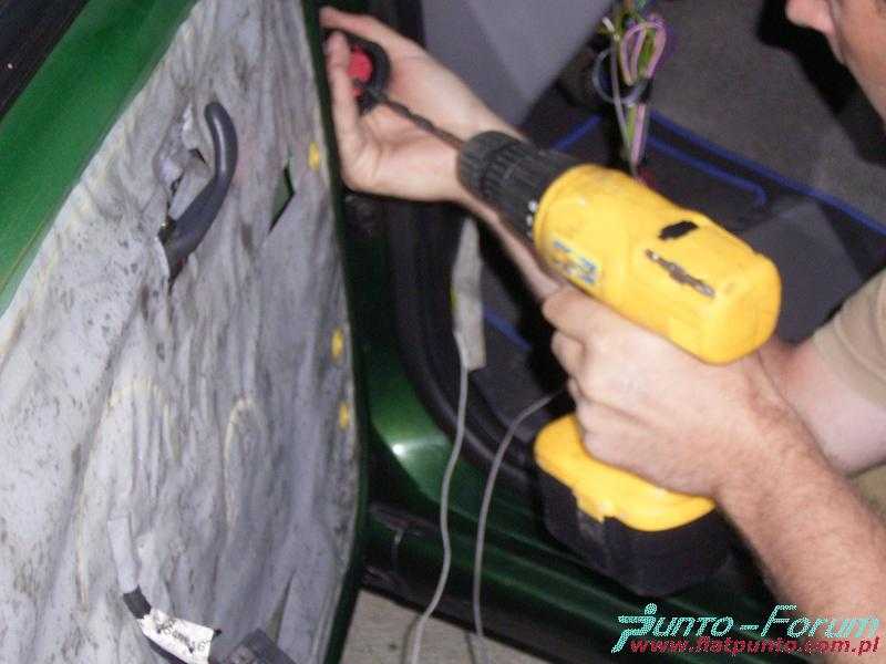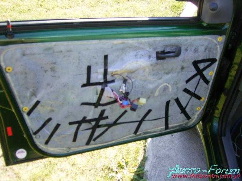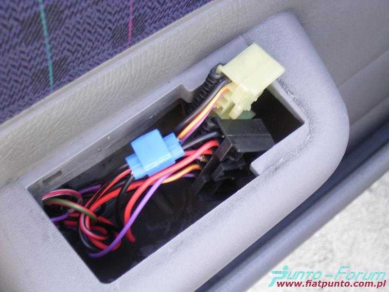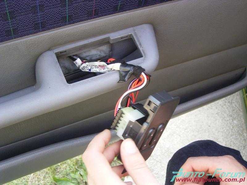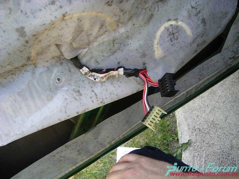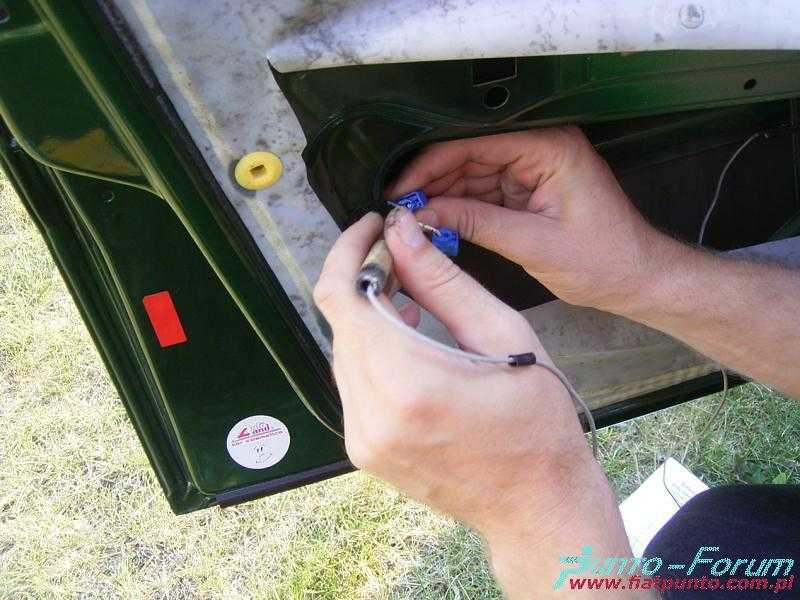 Kolejnym krokiem jest połączenie z masą, które zostało "skradzione" z przewodu masowego idącego od przełącznika szyby. Następnie należy przeciągnąć dwa przewody do wnętrza auta. Jeden podłączony zostaje do przewodu stacyjki, a drugi pociągnięty zostanie do bezpiecznika odpowiadającego za sterowanie szyb. W celu lepszego dostępu do kostki w drzwiach należy ją obrócić o pewien kąt i wepchnąć do wnętrza drzwi.