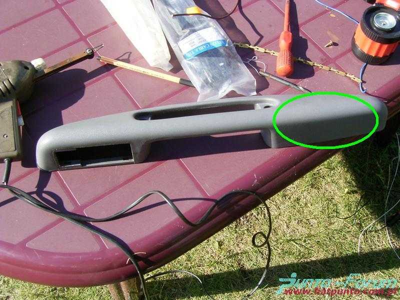 Drugą opcją było umieszczenie modułu wewnątrz uchwytu drzwiowego (tak jak zaznaczono na fotografii) - tyle, że trzeba w płycie borować. Niestety nie zmieści się on w okolicy wnęki na panel włączników szyb.