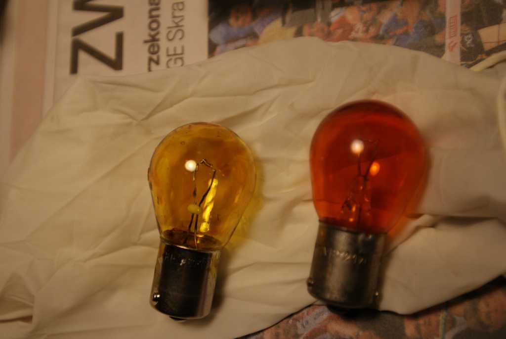 6) trzy żarówki do kierunkowskazu białe/bezbarwne (21W) - zwróćcie uwagę na rozmieszczenie bolców (nie są na przeciw siebie)