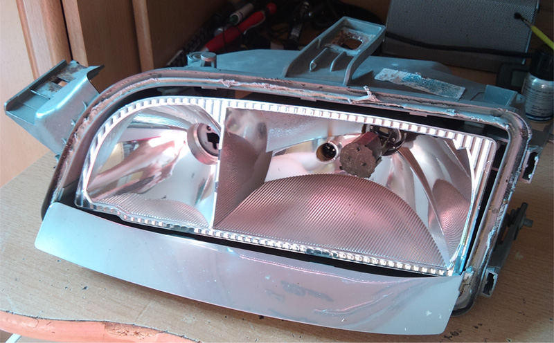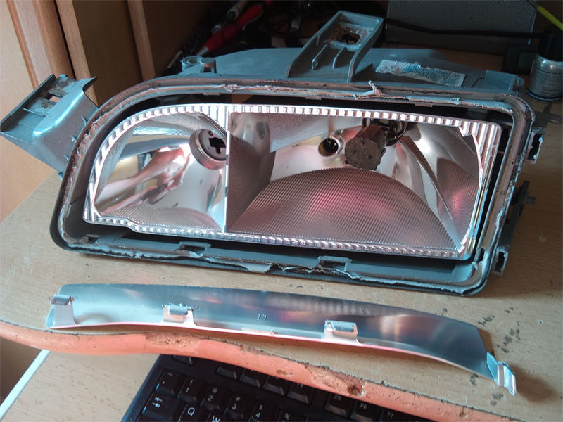 Ja właśnie robiłem zwykłą lampe H4 tu sprawa wygląda moim zdaniem troche gorzej. Zrobiłem tak: pomalowałem tą listwe przyczepioną do odbłyśnika od dołu oraz część szkła. Cała operacja oczywiście nie ma wpływu na świecenie reflektora. Poniżej pare fotek.   Tu jeszcze fotka pomalowanego klosza przed poprwkami.  No i efekt końcowy sama fotka nie oddaje całości efektu. Ale w rzeczywistości jak na moje oko wygląda jak oryginał.
