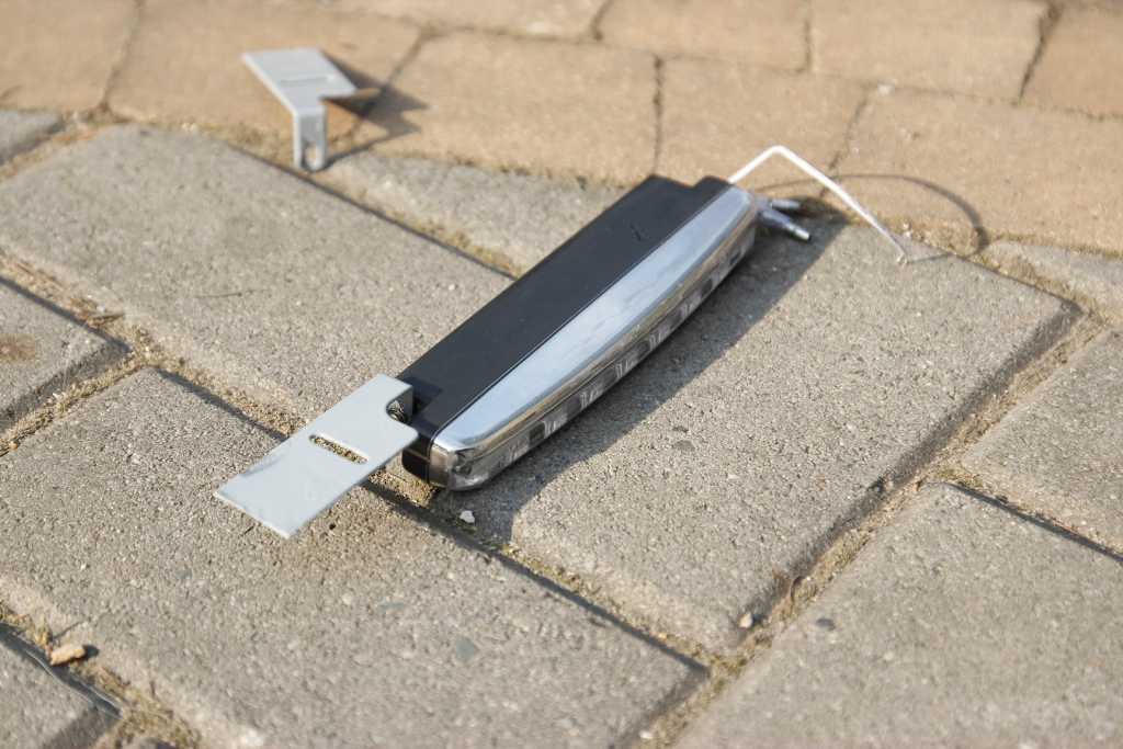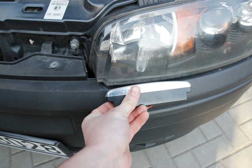 Instalacja gotowa, dziury gotowe, teraz montaż lampek. Tu był duży problem. Wielu rzeczy nie przemyślałem do końca ale jakoś się udało.  Trzeba tutaj wiele cierpliwości by dobrze przymocować. Pewno wielu z was by wymyśliło inny sposób montowania. Tak się zapędziłem, że wiele możliwości nie miałem. Oryginalnie jedna lampka miała się trzymać na żelaznym uchu, które w prosty sposób można było po prostu przykręcić do zderzaka. Wadą tego typu rozwiązania były za bardzo wystające lampki i dramatyczny, amatorski wygląd. Chciałem zrobić wszystko by wpuścić lampki w zderzak i wyglądały niczym listy ledowe pod reflektorami. Przerobiłem fabryczne mocowania, dostarczone w zestawie. Przeciąłem na pół i wykorzystałem do zamontowania: Załącznik: