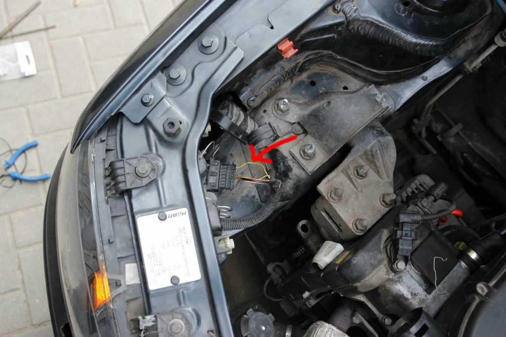 Teraz logika włączania świateł. Lokalizujemy kostkę i wiązkę kabli do reflektora. Łatwiej chyba będzie dobrać się od lewej strony. Załącznik: